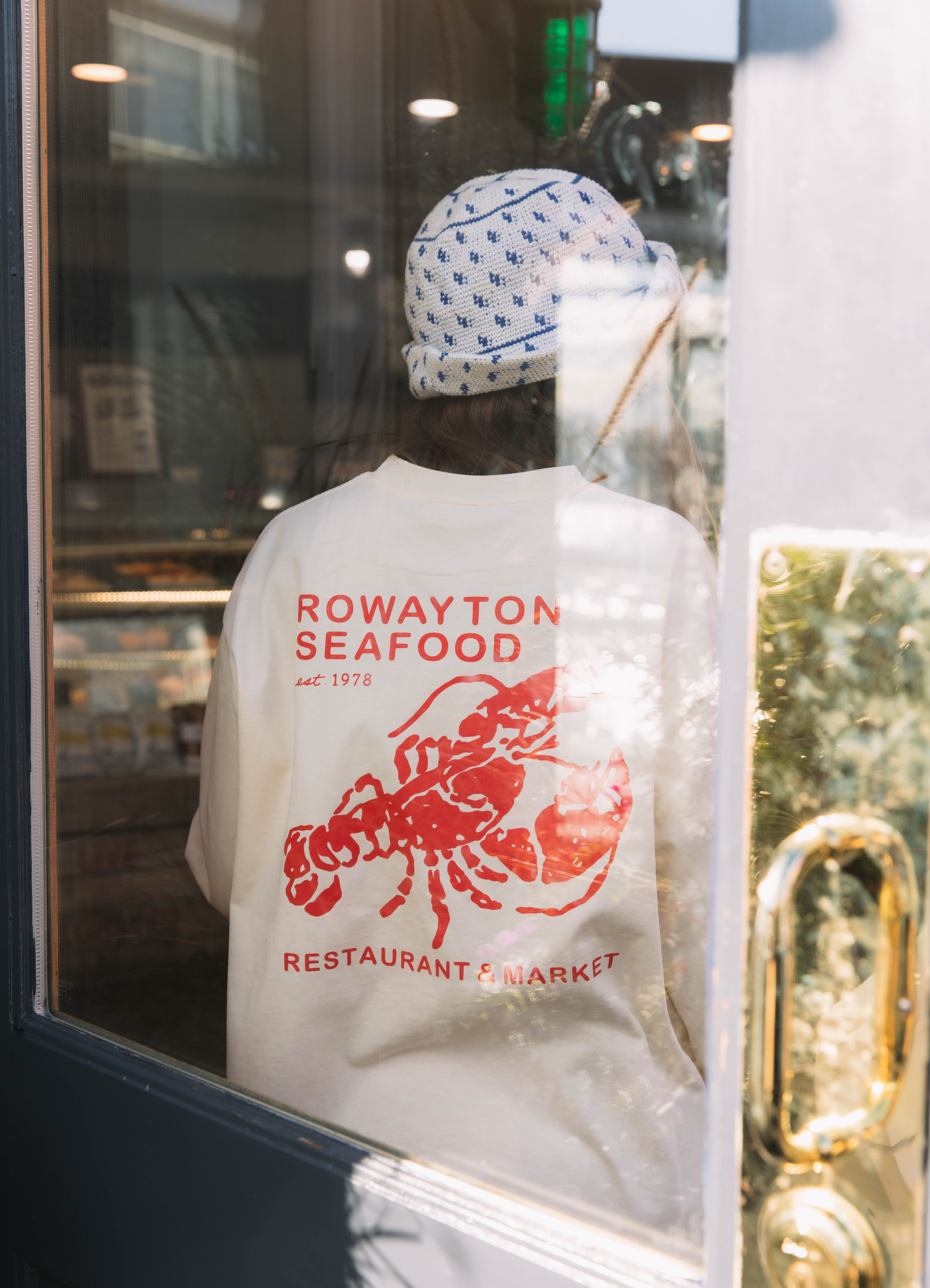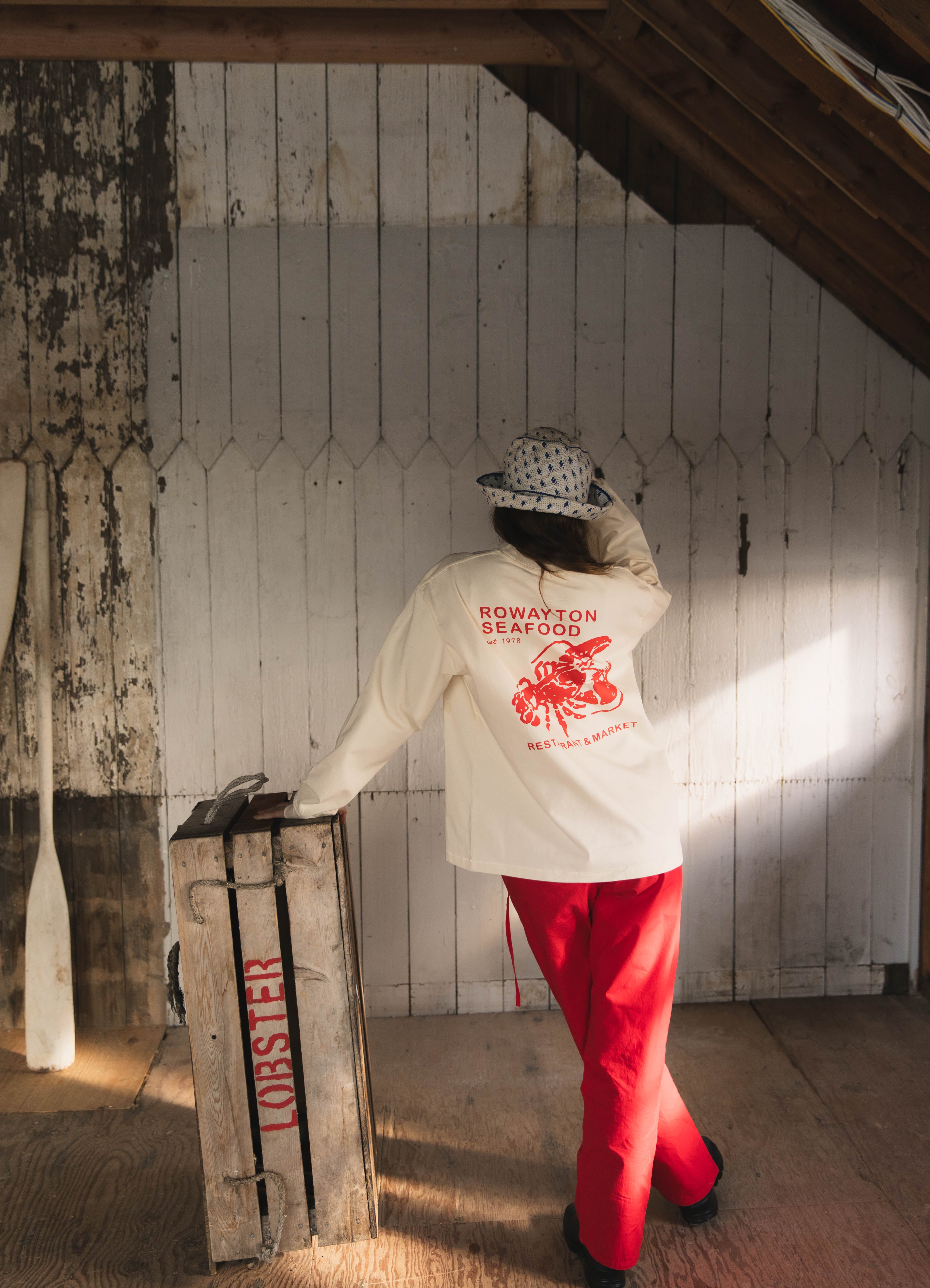 A Rowayton classic, reimagined in everyday form. This off-white long sleeve features a bold red lobster graphic on the back with “Rowayton Seafood Restaurant & Market” printed in vintage-inspired lettering — a nod to our roots and the coastal heritage we’re built on. Made from soft, mid-weight cotton, it’s the perfect throw-on layer for cool mornings, breezy evenings, or anytime you want to carry a little bit of the shoreline with you.